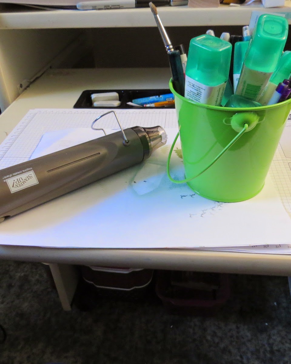 Now for the important part - I use my heat tool to heat up another bottle of glue. I move quickly and rotate the bottle several times. When the plastic feels warm to the touch I bang the end on the desk to allow the glue to go to the small tip. Because this bottle is plastic DO NOT, DO NOT leave the heat tool in one spot for too long. Could turn nasty!